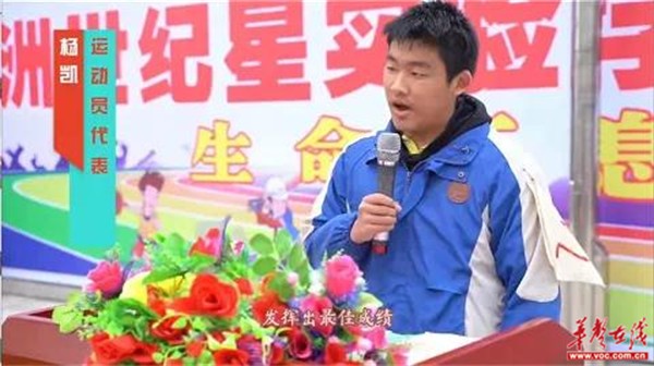 运动员代表九年级杨凯同学呼吁运动员严格遵守比赛规则,坚决服从裁判,尊重对手,尊重观众。以饱满的热情认真比赛,发扬顽强拼搏精神,胜不骄、败不馁,赛出风格,赛出水平,发挥出最佳成绩。