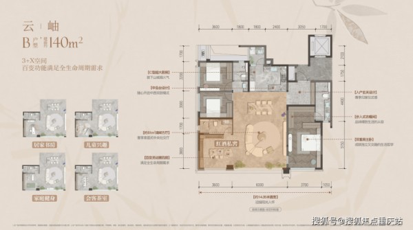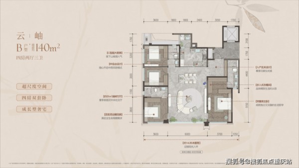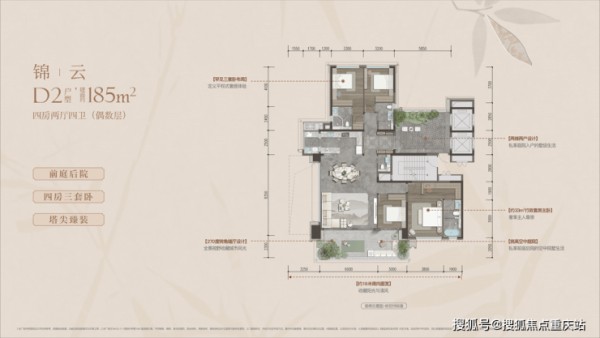 核心区围合式中庭,约3万㎡园林景观,约1500㎡核心水景,超百米奢阔楼间距,规划一带三院九集十二景,敬献渝州雅士。园区名贵树木多,珍稀价值高,珍稀羽毛枫、百年桂花、银杏、老庄石榴、朴树等,遍寻全国才找到,尤为不易。园中西班牙进口油橄榄,树形挺拔,雄伟大气,是镇园之宝,象征着根基稳固和世代兴旺,预示着前途光明、步步高升、家庭美满。