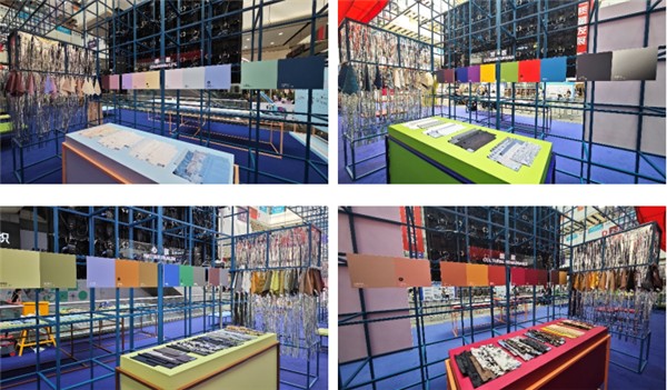 现场可见,发布区对1000余款面料和300余款辅料进行了系统化的梳理呈现,展现了未来季节的产品特色以及面辅料开发的重点方向。其中,“呼吸”主题的面料拥有新颖的趣味化视效以及细腻触感,中性化色彩的使用令其具有长期价值;“对话”主题注重材质的创意表现以及生动鲜艳的色彩应用,满足城市生活穿搭需求;“心旅”主题中面料融合日常舒适与户外性能,具有多场景适用性;“绽放”主题则关注东方文化元素的运用,打造出新古韵风格。
