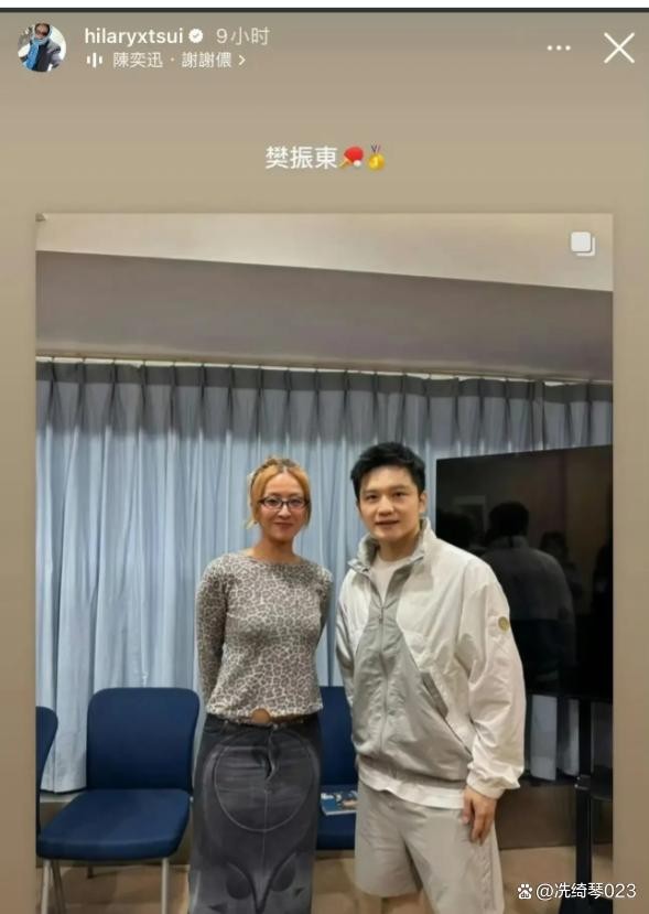 陈奕迅老婆晒与樊振东合照,这裤子也太特别了,小胖真是太可爱了樊振东与徐濠萦合照,花哨裤子成焦点,网友热议其时尚突破