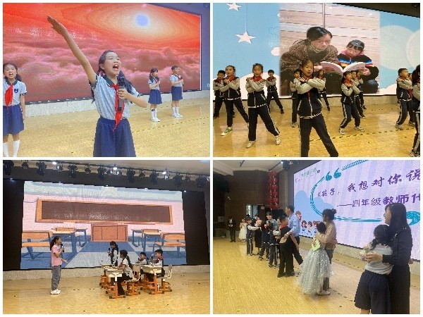 四(2)班的学生带来了情境表演《师生情》,学生手捧鲜花,深情朗读,表达了对老师们深深的眷恋之情。四(4)班带来了小品表演《心的呼唤》,让我们看到了一位学生的转变,由开始的抵触到理解父母的辛劳。活动现场还展示了同学们在“感恩微行动”打卡中的表现,四(1)班朱紫沫现场介绍了自己在“感恩微行动”中的成长。