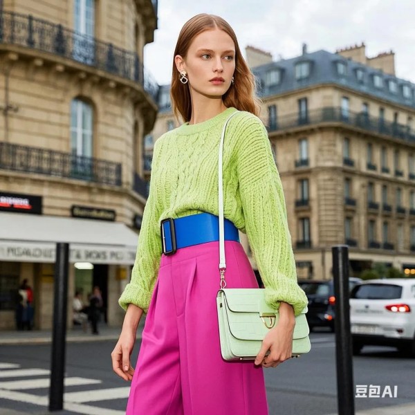 今年流行把莫奈色卡穿身上!奶油绿针织配电子粉阔腿裤,海盐蓝衬衫撞色钴蓝腰封,Pantone认证的番红花色连衣裙+白葡萄绿手包,记住这个公式:主色70%柔+点缀30%艳=教科书级穿搭!
