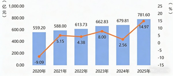 根据《2025年中国游戏产业报告》,2025年国内客户端游戏市场实销收入781.6亿元,同比大幅增长14.97%。这一增长主要得益于端游中的头部长青产品收入稳中有增,以及多款热门移动游戏新品在PC端同步发行。