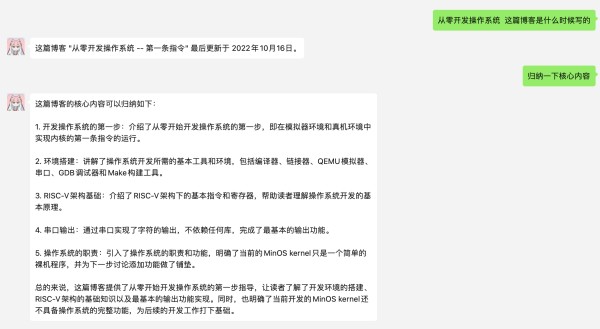 以下是把 博客文章 加入知识库后的例子,AI助理可以有效帮你管理知识,通过问答的形式快速筛选和获取: