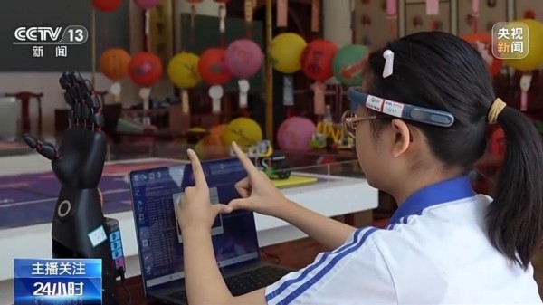 在深圳市,初中二年级的学生们通过头环等设备采集脑电波信号,经人工智能算法分析解码,将其转化为控制信号,驱动机械手运动,在实验中感受人工智能的奇妙。