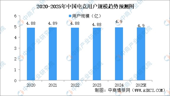 近五年来,用户数量基本维持稳定。这一转变对电竞产业产生了显著影响。产业需在现有用户中挖掘更多增长潜力,增量用户挖掘难度较大,存量用户受到更多关注。中商产业研究院发布的《2025-2030年中国电子竞技专题研究及发展前景预测评估报告》显示,2024年电竞产业用户为4.9亿。中商产业研究院分析师预测,2025年将维持在4.9亿。