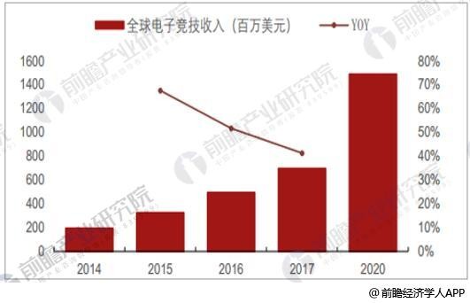 2014-2020年全球电子竞技收入