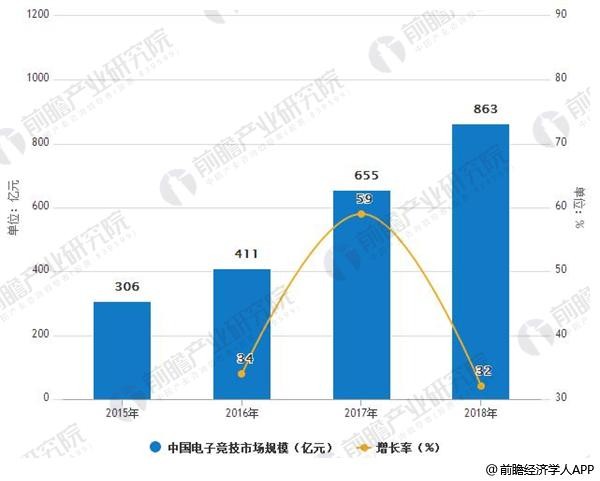 2015-2018年中国电子竞技市场规模及增速情况