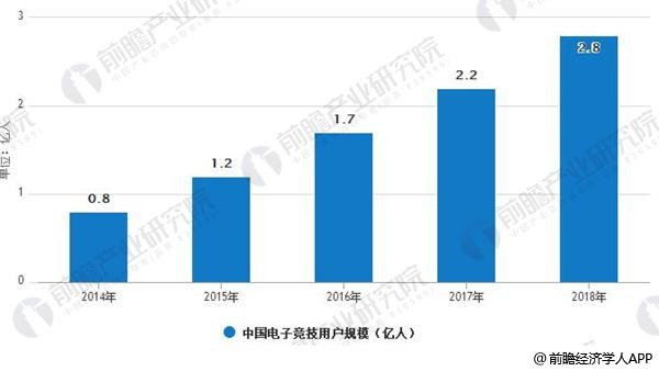 2014-2018年中国电竞用户规模