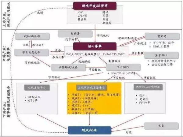 电子竞技游戏赛事运营产业的上游为电子竞技类游戏内容,下游衔接广大电子竞技游戏爱好者。上游电子竞技游戏内容主要依靠国内外游戏研发商的研发,当前主流的电子竞技游戏主要包括 VALVE 研发的 DOTA2、Riot 研发的英雄联盟、暴雪研发的风暴英雄和炉石传说等。