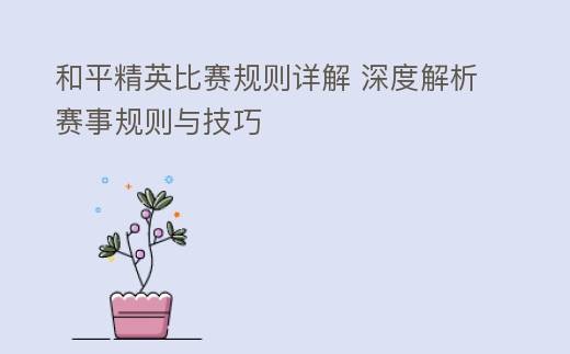 和平精英比赛规则详解 深度解析赛事规则与技巧