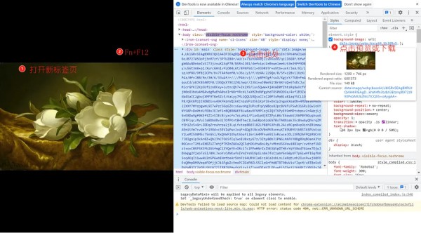 ②查看页面元素以下载作品。