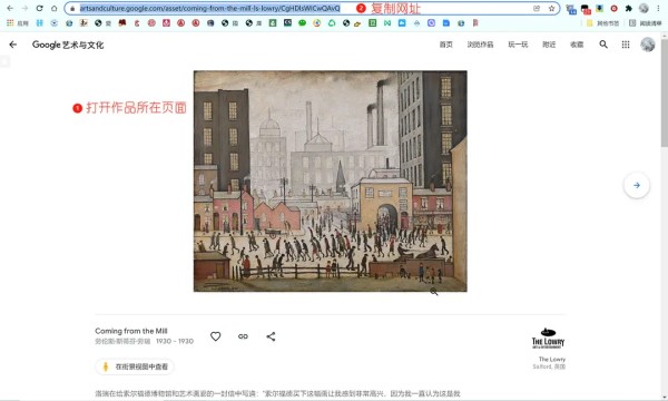 ①在“谷歌艺术与文化”https://artsandculture.google.com/中,找到要下载的作品,打开所在的独立网页,复制地址栏的网址。