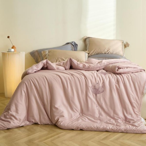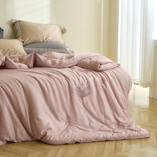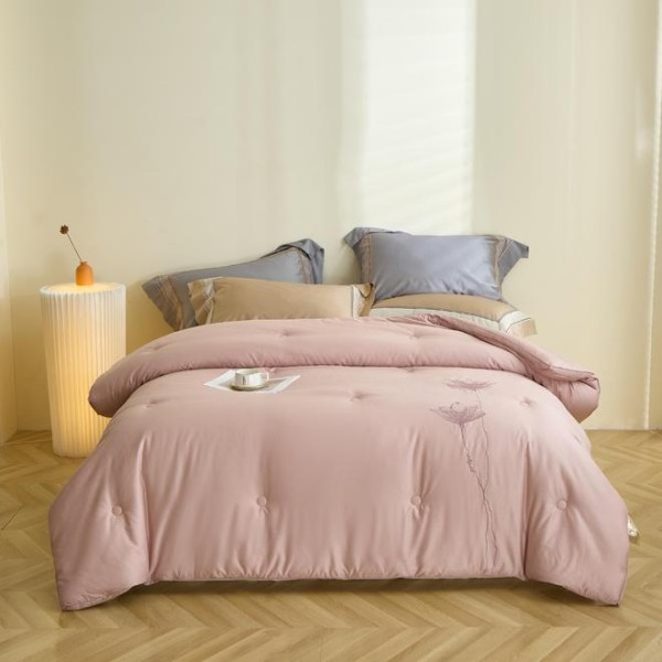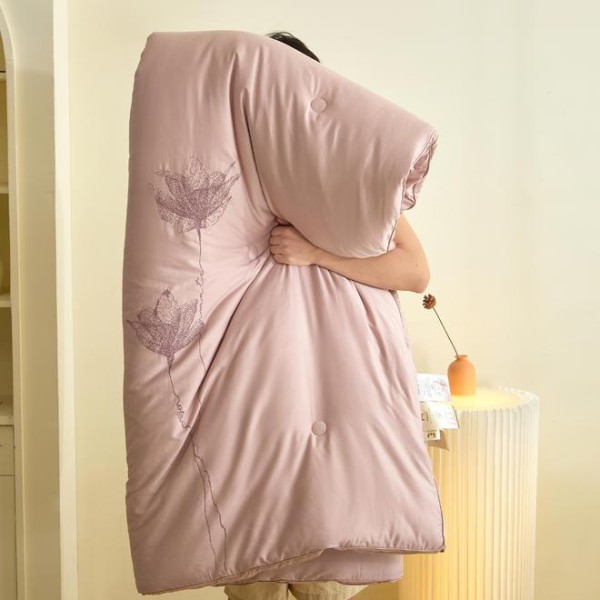 南方霜降后仍残留潮气,普通化纤被易导致 “潮冷黏身”。大豆纤维填充的被芯(如 ETON 伊顿荷恋冬被),依托天然植物纤维的透气结构,可快速吸收并蒸发被窝内多余湿气,保持被体干爽,既抵御湿冷凉意,又避免闷汗困扰,完美适配南方无暖气环境;其中 ETON 伊顿荷恋冬被,更以针绣荷花的雅致工艺融入居家场景,兼顾实用保暖与空间格调。