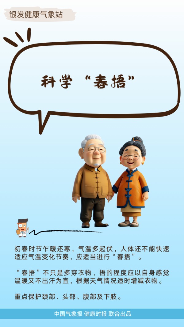 “捂”得灵活——“春捂”通常适用于平时体质虚弱的年轻人、抵抗力较弱的老年人、久病之人以及儿童。对于青壮年,尤其是体质偏燥热、阴虚或者湿热的人,“春捂”就不一定适合了。因此,不同的人群“春捂”的要点也不相同。如对于代谢快、易出汗的儿童,可比成年人少穿一件,但需护住肚子和脚踝,老年人则要重点保暖背部和关节,晨练时戴帽防风,避免受凉。(林禹彤)