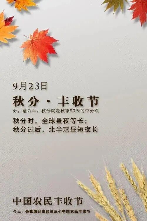 23日,我们迎来了中国传统二十四节气之一的“秋分”,同时这也是“中国农民丰收节”的喜庆时刻。