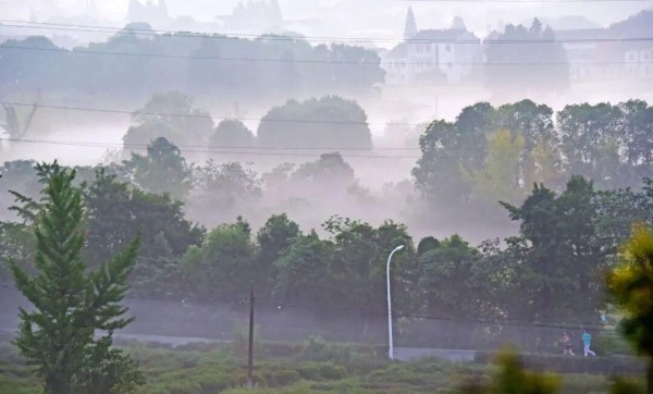 连续的阴雨天之后,阳光终于洒落,带来了久违的温暖。然而,由于湿度依然较大,风力相对较小,使得整个城市笼罩在一片雾蒙蒙之中。微浓的晨雾与早晚的凉意交织,仿佛诉说着秋意渐浓的故事。