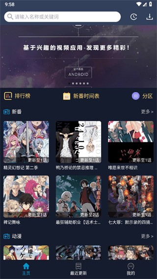 3、通过关键字搜索功能快速找到自己想看的番剧,还支持按照更新时间、评分等。