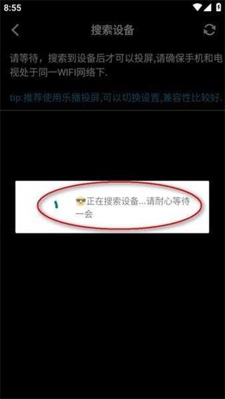 4、然后搜索投屏设备,连接成功后就可以投屏进行播放了。