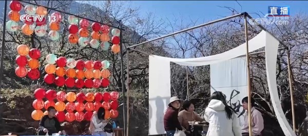 为了让游客沉浸式体验赏梅乐趣,进入花期之后,流溪河国家森林公园举办了系列活动,游客可以和身穿汉服的工作人员进行互动,在充满古韵的小桌上品茶赏花,还可以逛逛土特产市集,尝尝当地农户自晒的腊肠、腊鱼,非常有年味儿。