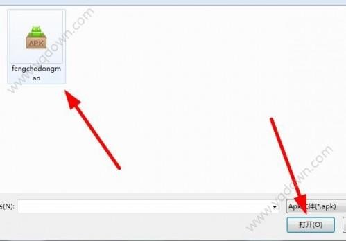 4、然后在弹出的框框中,选择本地你要安装的“风车动漫”,点击“打开”,