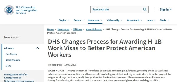 上周我们说到美国H-1B抽签改革,12月29日方案已经正式发布,并于2026年2月27日结束公示期后生效。意味着,从2027财年(即2026年3月启动的H-1B申请季) 起,H-1B抽签规则将正式从随机抽签调整为按“薪资级别加权”的方式执行。