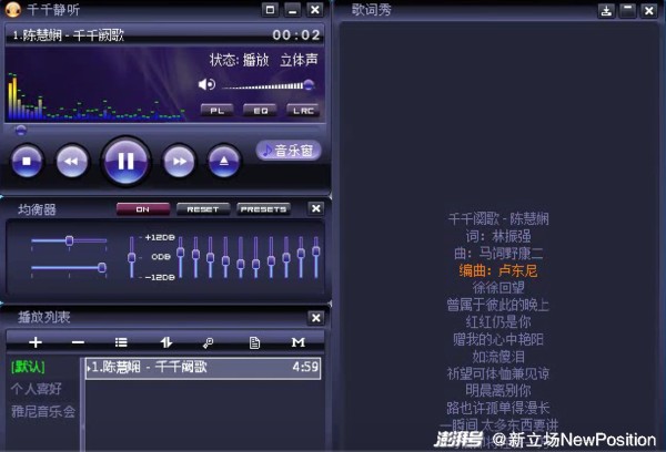 2002年,上海,工程师郑南岭在给Winamp做汉化工作的闲暇之余,发布了一款“MP3随身听”的软件,随后出于对《千千阙歌》的热爱,他又将软件改为千千静听。作为一款集播放、转码、歌词、中文、免费等优点于一身的软件,千千静听牢牢抓住了用户的心,开启了中国在线音乐新时代。