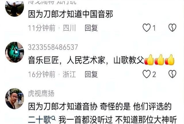 尤其是在中国音协那种,平时估计只有业内人士才会瞄两眼的账号下面,全是替刀郎鸣不平的,这场景,就有点意思了。