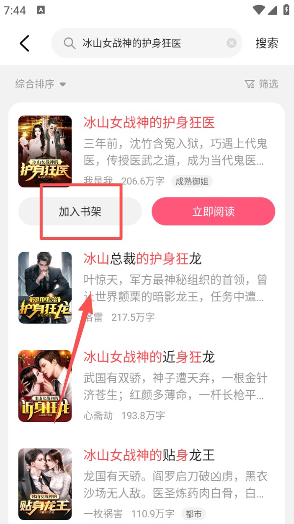 3、找到心仪小说后,点击 “加入书架”,方便后续阅读。