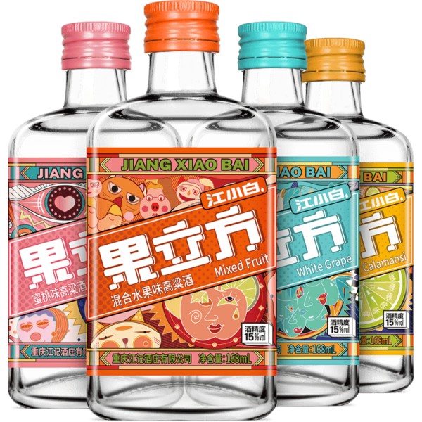 江小白果立方果汁酒,包含蜜桃、白葡萄、卡曼橘和混合水果四种口味,满足你不同的饮酒需求。每一瓶都蕴含超过30%的真实果汁,清甜无杂,轻松享受低度酒的魅力。它不仅是一款饮品,更是一种生活态度,展现出年轻与快乐的品牌理念。