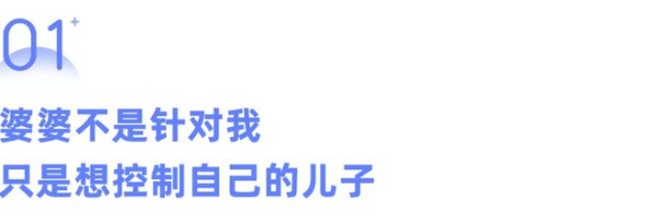 “听完你刚刚讲的事,我感受到的是:你的婆婆并非针对你,而是在控制你老公。儿子如果脱离了母亲的控制,母亲就会有不安全感,一种被夺去权力的感觉。所以攻击的矛头才对准你。”