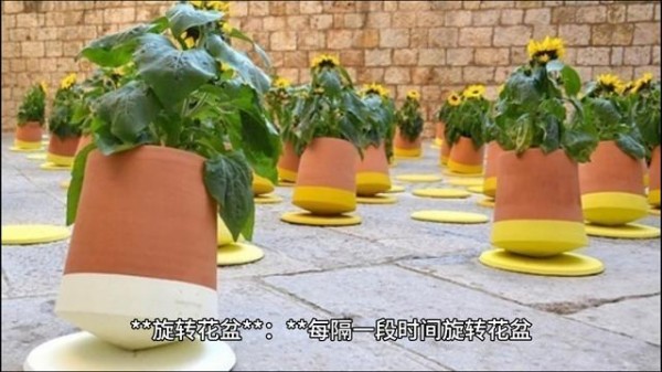 →旋转花盆:每隔一段时间旋转花盆,让植物均匀接受光照,避免向光性生长。