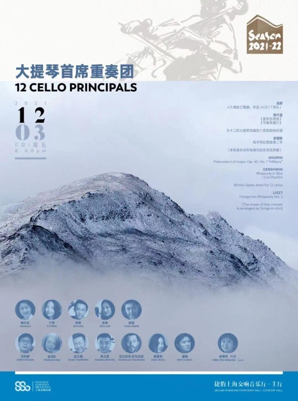 “上交十二把大提琴”组合曾给上海听众们留下过许多难忘的印象。在中国音乐家协会交响乐团联盟的鼓励下,来自全国各地的十二位大提琴首席们汇聚到一起,分别是娜木拉、于萍、朱牧、朱琳、杨锰、沈和群、金兗珍、赵云鹏、黄北星、尼古拉斯·萨瓦拉斯、翟慧莉和潘畅,并特邀了小提琴家徐惟聆,一同在12月3日上海交响音乐厅的“大提琴首席重奏团”音乐会中联袂登场。