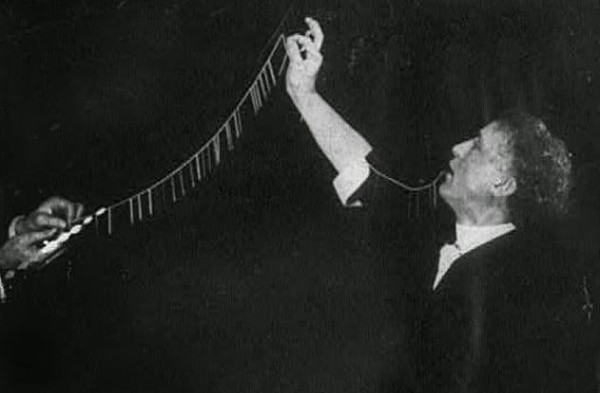 魔术师Harry Houdini展现了一项令人惊叹的技艺——吞下线和50根针,并在众人瞩目下将其洗净。随后,他即兴表演了一个由50根针组成的“连锁”。利用灯光效果和隐藏在口中的硬纸板,避免实际吞咽针。然而,真相并非如我们所见。魔术师巧妙地利用灯光效果,将针头吐入一杯水中,从而避免了真正的吞咽。事实上,他一直将一根棕色的硬纸板藏在口中,当他在表演前展示“空”嘴时,只是巧妙地用手指盖住了纸板。