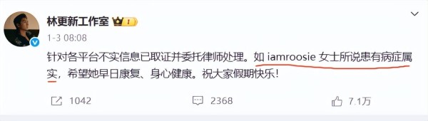 就在全网熬夜吃瓜的档口,林更新工作室的回应却跳出了“蓝底白字严正声明”的套路,一句“若司晓迪女士确实患病,祝愿其早日痊愈”,配上“已收集证据启动法律程序”的常规表述,瞬间把“内涵”拉满。