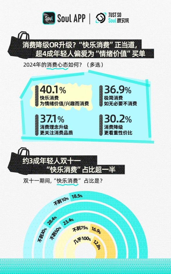 此次是Just So Soul第三年基于Soul App推出“双十一消费”调研,通过持续跟踪,也形成了独特、有趣的洞察。如今的Z世代究竟为什么而买单? 被调侃“没福硬享”的年轻人正经历消费降级还是消费升级?Jellycat、Chiikawa等又为何风靡年轻群体?