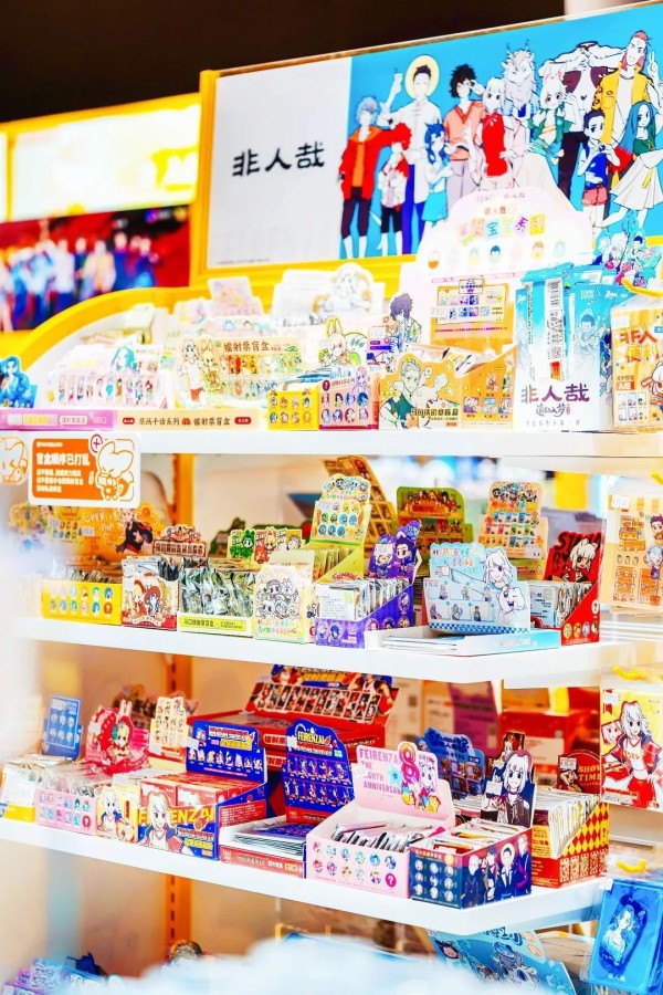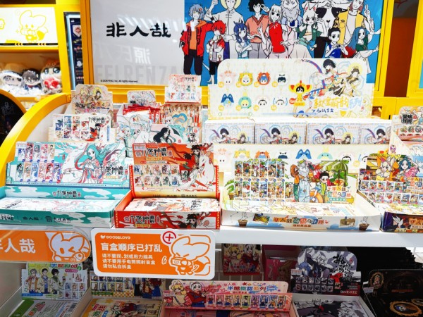 盲盒凭借其“未知的惊喜”,持续点燃消费者的收集欲与社交热情,玩家们在线上交流群、互换群中寻找共鸣。而“谷子”(漫画、游戏衍生周边如海报、徽章、透卡)则承载着年轻人对虚拟角色的情感投射与精神寄托。“收藏‘谷子’,就像收藏一份热爱。”店长李女士道出其热销的缘由。