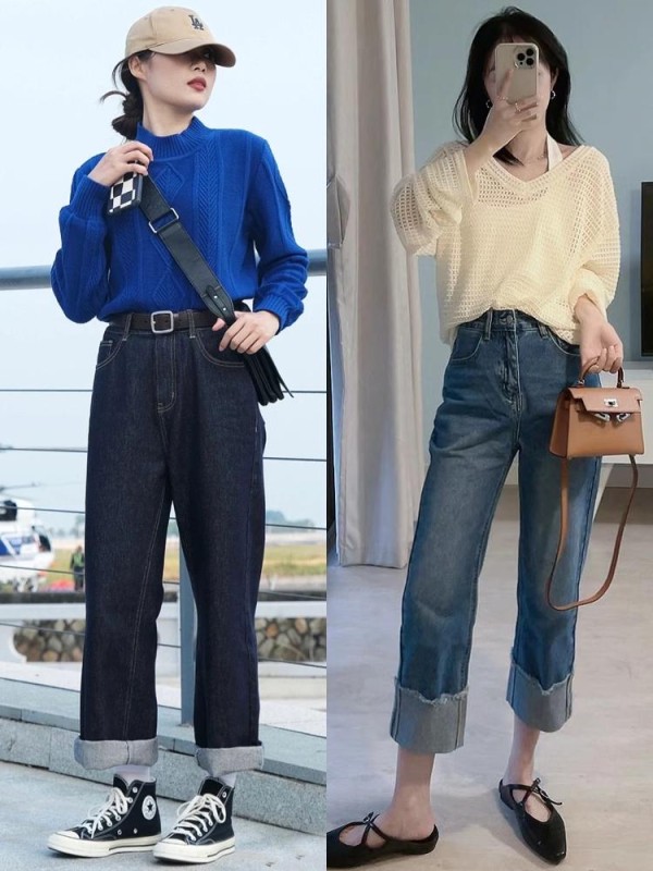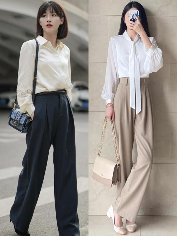 说到长袖上衣,针织衫和衬衣是秋季穿搭最值得推荐的单品,一个温柔、甜美,一个尽显女性的知性、大方,而且两件上衣可搭配的裤子也特别丰富,比如西裤、牛仔裤、阔腿裤、直筒裤等。