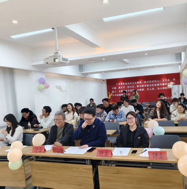 11月30日,致实书院宣讲室笑语不断、掌声迭起,材料学院首届脱口秀大赛在这里快乐收官,本次比赛邀请到了能源与化工学院副书记李晓光老师、公共艺术教育中心何志超老师担任评委。