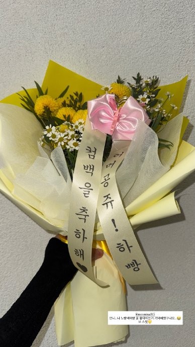 翻译:谢谢姐姐...你记得我喜欢黄色和花啊...好贴心待会儿见#Apink迷你11辑《RE:LOVE》##Apink将1月5日回归# 拼车帖:迷你11辑团go:新专1+1:招新公告: