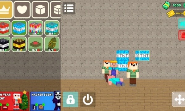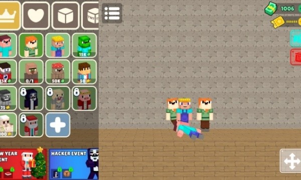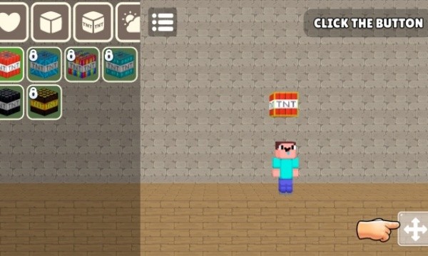 1、使用左右的工具栏里面的方块来进行创造,多个游戏角色可以选择使用,目前只有第一个解锁。