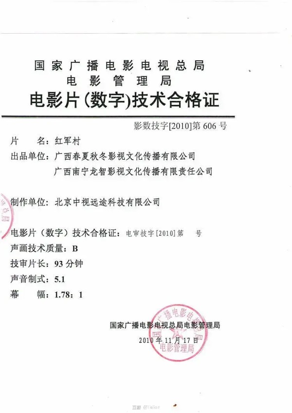 (3)影片后期全部做好后,会最后进行所谓的“技术审查”,确保影片放映质量。2017年3月后已不再单独发放。
