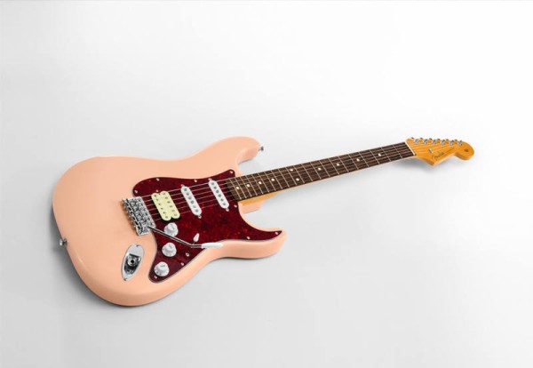 Fender李荣浩签名款 Stratocaster® 电吉他搭载了复古风格的单线圈琴颈与中间拾音器,具有明亮的高频和结实的低频,饱满的中频则强化了这款签名乐器的温暖基调,听起来极具“歌唱”感,同时具有出众的动态表现。琴桥位置的Gotoh HB-Classic双线圈拾音器则大大扩展了琴款的音色范围和可玩性,在高输出功率下依然能够保持较高的清晰度,也令过载音色更具冲击力。桤木琴身上覆以极具质感的复古贝壳粉漆面,结合红玳瑁色护板,营造出复古却又清新的视觉效果。枫木琴颈具有1965年“C”形轮廓,结合更加平坦的12英寸弧度半径玫瑰木指板和21品中大号品丝,在实现顺畅的演奏手感的同时,也避免了推弦时可能出现的断音情况,并增强了延音。此外,琴款使用了6鞍复古式同步颤音琴桥与复古式卷弦器,在确保了演奏性能稳定与精确的同时,也延续了Fender一脉相承的经典血脉。Fender李荣浩签名款 Stratocaster® 电吉他不仅是李荣浩音乐生涯中的首款签名乐器,也是Fender首次与中国大陆艺术家携手打造的签名款电吉他,将这位才华横溢的艺术家标志性的吉他音色,以及独特的审美风格完美融合,并实现了其理想中的完美演奏手感。