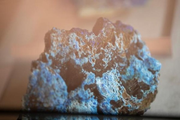 “蓝铜矿,是矿物颜料‘石青’的矿物学名称,古代最珍贵的蓝色颜料之一;青金石在古代被称为‘金精’‘青黛’,在艺术史上被广泛应用于最庄严和重要的场合……”步入展区,引入眼帘的是各种矿物标本,以及当代艺术家以岩彩为媒介进行的创作实践与美学拓展。