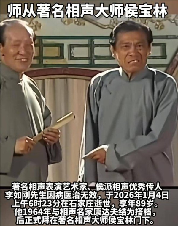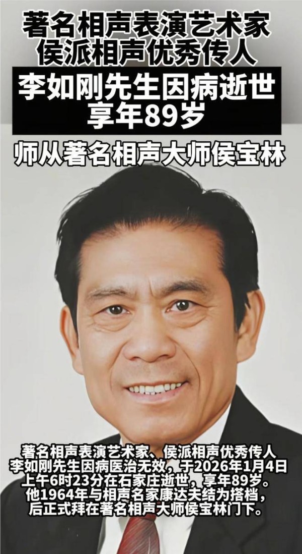 李老先生去世了,石家庄殡仪馆定于明天上午举行告别仪式,中国曲艺家协会主席冯巩将送上花圈。这表明李老先生在行业内的地位非常重要,尽管普通人对他并不熟悉。