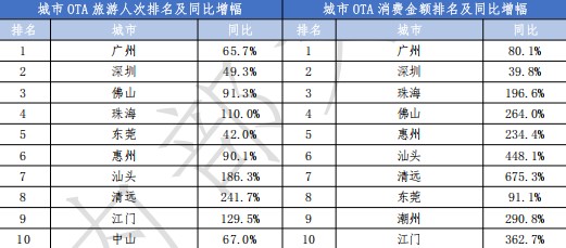 从具体城市看,广州、深圳、佛山、珠海的客流规模和旅游消费金额,牢踞省内第一梯队。