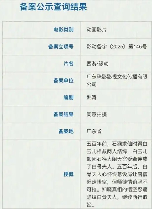 2025年11月下全国电影剧本备案公示中,一部名为《西游·缘劫》的动画电影赫然在列。其故事梗概显示,影片将重塑孙悟空与白骨精的关系。电影设定中,白骨精原名白玉儿,五百年前曾是石猴求仙路上的救命恩人。后因孙悟空大闹天宫受牵连化为白骨夫人,心怀恨意。