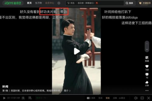 所以在短剧《叶问》中,不是流于形式的花拳绣腿,而是真的将咏春拳融入到短剧中,剧中一集一个高光,一集一个爽点。功夫、江湖、家国情怀与匹夫有责的民族大义,在短剧版《叶问》中也是最核心的文化精髓。在剧集的评论区和弹幕里都能看到观众对打戏的赞叹。