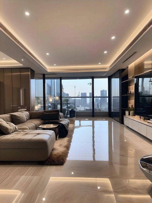 材质:幻彩大理石、冷翡翠岩板成为空间焦点,如桁鹤装饰为140平米法式轻奢设计的“流动纹理电视墙”,搭配鎏金摆件提升视觉张力。色彩:法式倾向象牙灰+奶茶色渐变,现代风格则采用高光黑柜体+哑灰岩板,例如齐家柚子为100平米两房打造的“极简轻奢客厅”,金属线条勾勒出精致轮廓。智能:隐藏式智能灯光、温控系统融入设计,兼顾美观与实用。适用人群:中产家庭,追求品质感与性价比的平衡。