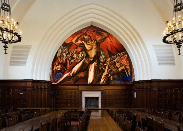 尽管当时在美国鲜为人知,但墨西哥艺术家何塞·克莱门特·奥罗斯科后来成为著名的“墨西哥三大壁画家”之一——这三位伟大的墨西哥壁画家分别是奥罗斯科、迭戈·里维拉和大卫·阿尔法罗·西凯罗斯。1930年创作的《普罗米修斯》是奥罗斯科在美国的第一幅重要壁画,也是“墨西哥三大壁画家”中第一位在美国创作的壁画。这幅画陈列于加利福尼亚州克莱蒙特市波莫纳学院的一个餐厅内,描绘了古希腊神话中的普罗米修斯——这位神祇违背宙斯的意愿,将火赐予了人类。由于担心冒犯部分观众,奥罗斯科在画中对这位裸体形象做了无生殖器处理。90多年后的今天,学生们每天都能欣赏到奥罗斯科的作品,游客们也能在其原始环境中领略它的风采。